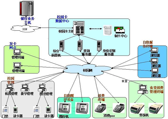 校園一卡通系統(tǒng)通過在校園食堂、浴室、開水房、班車等場所部署終端設(shè)備,實現(xiàn)各應(yīng)用場所的刷卡小額消費功能,方便快捷,方便師生校內(nèi)生活。