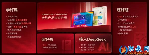 近日,學而思智能硬件正式宣布兩大產(chǎn)品線:學而思學習機和學而思學練機的內(nèi)容全面升級。此次升級緊密結合新課標要求,圍繞提升產(chǎn)品力這一核心,通過上線多項全新課程、累計新增26萬+道同步練習、擴展3500+本分級閱讀,以及全面接入DeepSeek計劃推出全新AI輔助功能等,致力于打造“學好課、練好題、讀好書”、契合孩子學習需求的智能硬件“三好生”,做到“真的好內(nèi)容,孩子真的愛用”。