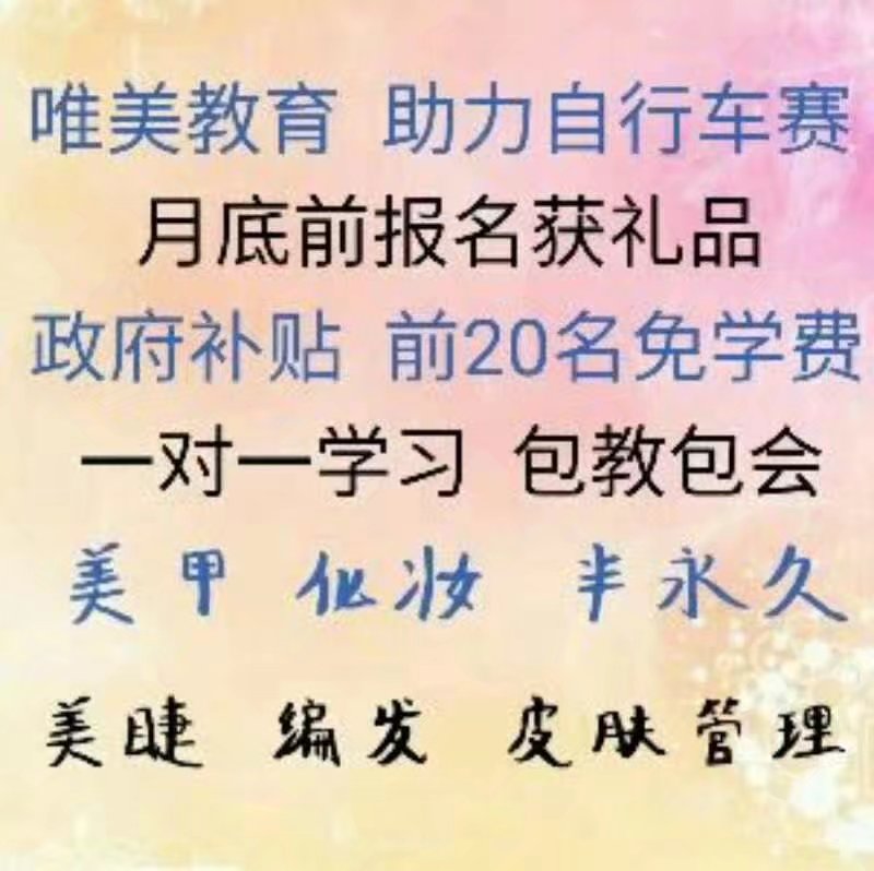 驚喜 驚喜 特大驚喜 唯美教育學(xué)校為迎接 邢臺(tái)自行車賽 特為愛美人士重推出以下助學(xué)活動(dòng): 凡在活動(dòng)期間外地需住宿學(xué)習(xí)的學(xué)員報(bào)名,即可獲得免住宿費(fèi)1 個(gè)月 凡在活動(dòng)期間報(bào)名學(xué)習(xí)的寶媽,均可為自己親愛的寶寶獲得超級(jí)可愛書包1 個(gè) 凡在活動(dòng)期間報(bào)名學(xué)習(xí)的單身女孩或已婚但未當(dāng)寶媽學(xué)員,可獲得超級(jí)大超級(jí)可愛的1.6米泰迪熊或1.6米瞌睡熊毛絨玩具1 個(gè)(每個(gè)均有7 個(gè)顏色可選哦) 活動(dòng)時(shí)間:2017 年8 月11 日——2017年8 月31 日 只要你愛美 只要你愛好 只要你愛學(xué) 只要你喜歡 那麼就不要再猶豫了 機(jī)會(huì)不多,失不再來 心動(dòng)不如行動(dòng),趕緊行動(dòng)吧