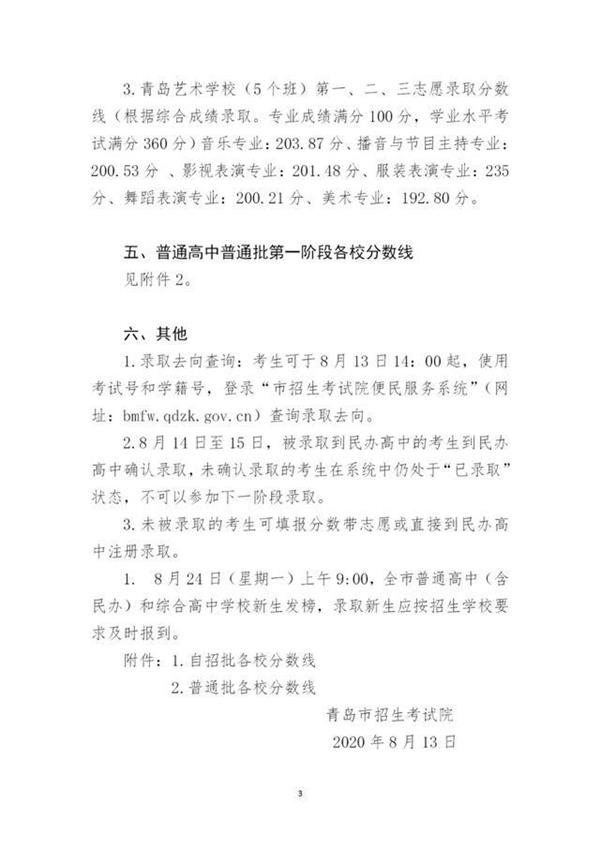 2020青島中考分?jǐn)?shù)線公布