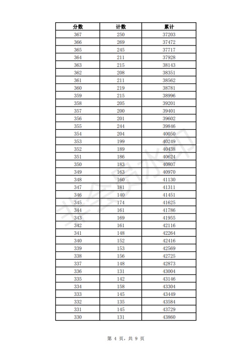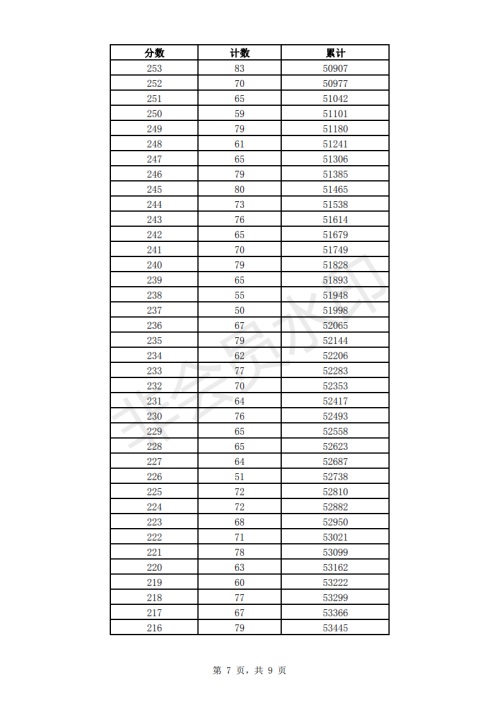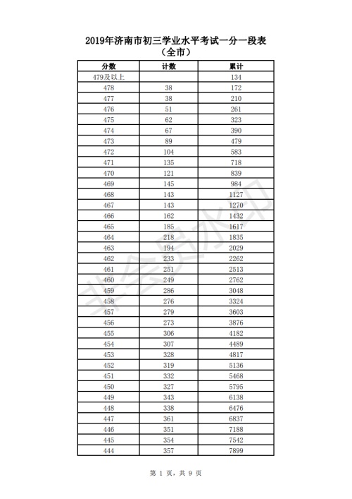 2019年濟(jì)南市中考成績(jī)一分一段表