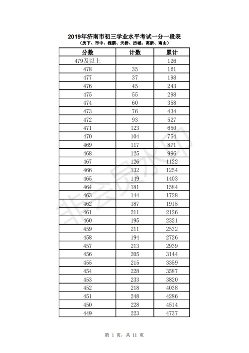 2019年濟(jì)南市中考成績(jī)一分一段表出爐啦,具體詳情如下所示: