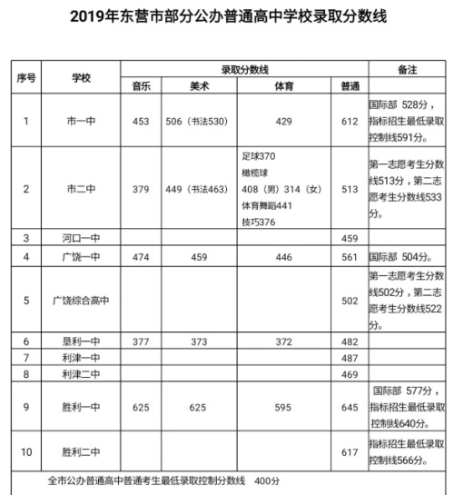 2019山東東營(yíng)中考分?jǐn)?shù)線公布